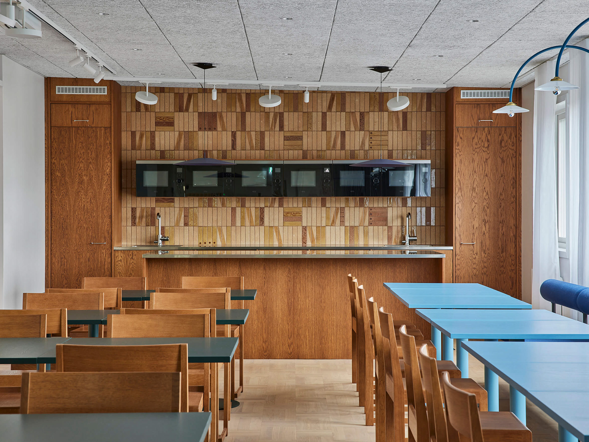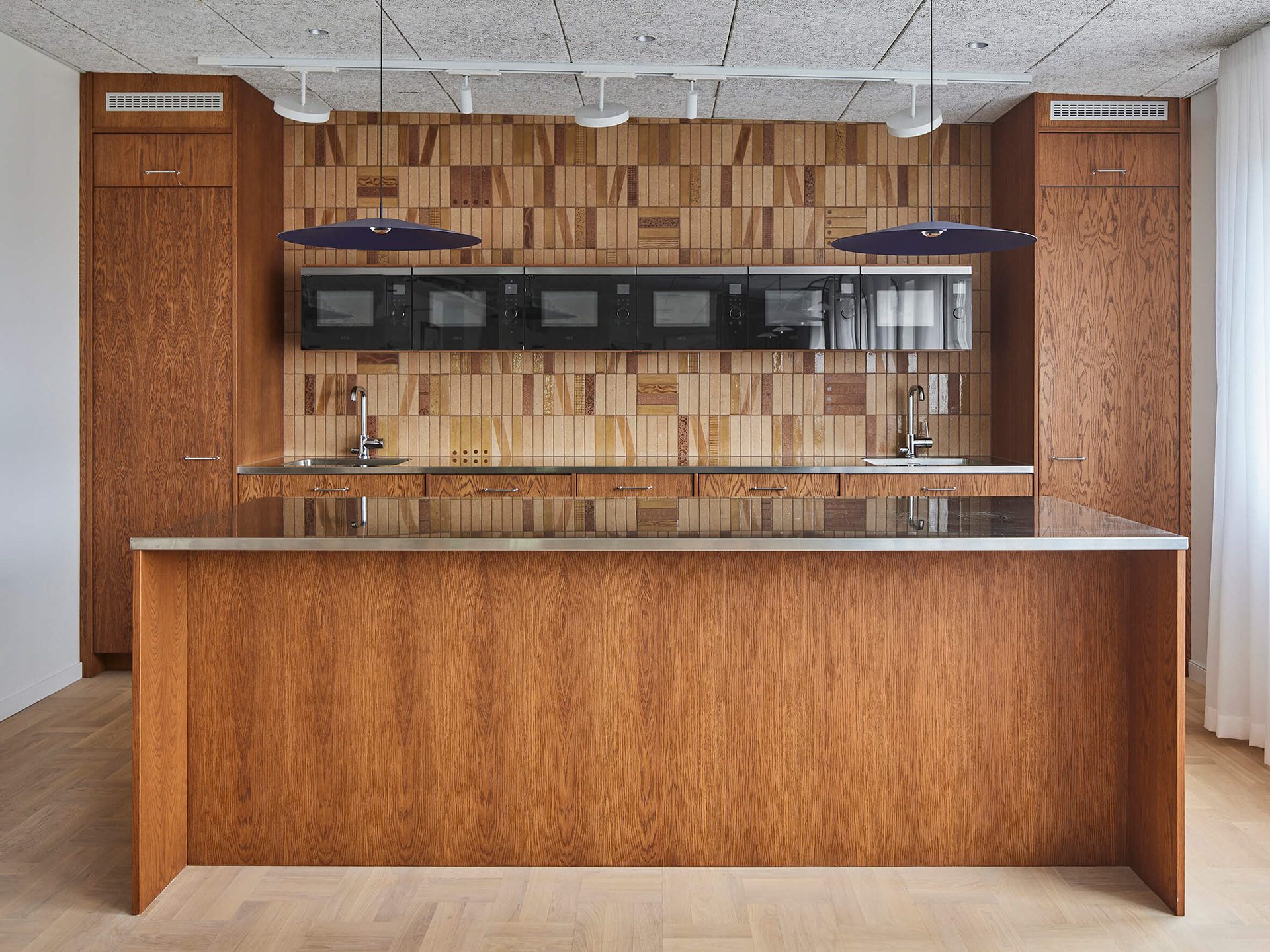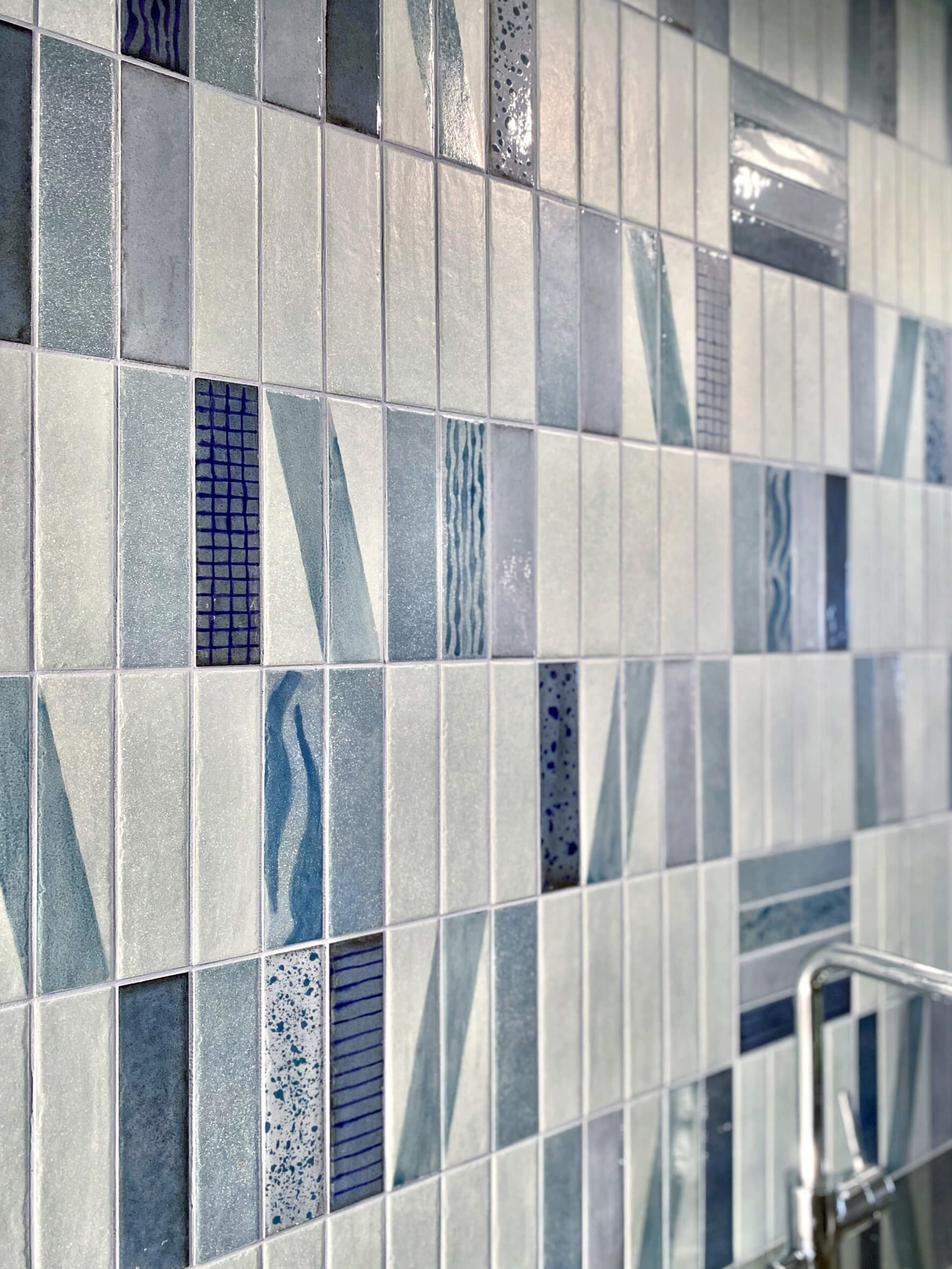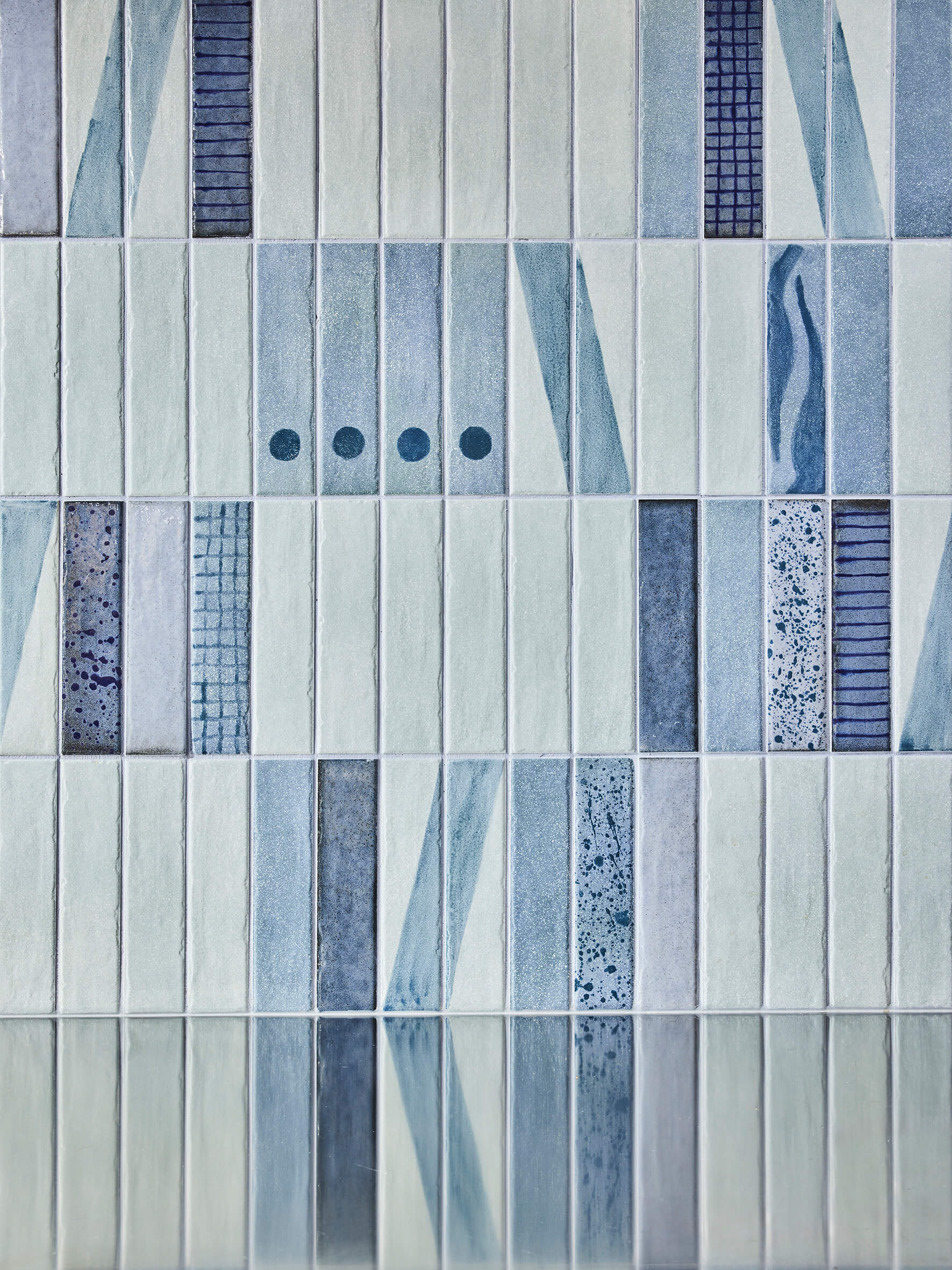 A site-specific tile artwork for the offices of publishing house Natur&Kultur, 2024, in collaboration with Studio Stockholm Architects. The artwork is based on glazed Italian stoneware tiles. I have created a pattern, partly through the different colors of the tiles, and partly by painting and re-firing over a thousand of the tiles. The tile pattern resembles a bookshelf, where the tiles form book spines. The book as a symbol evokes associations with learning, history, knowledge, stories, poetry, memories, conversations, voices and culture. There are books you return to, books that can change you and remain in your mind and heart. A collection of treasures that grows year after year. The artwork is also paying homage to a tile decoration on the building's facade, created by Signe Persson-Melin and Anders Bruno Liljefors, and also refers to the pattern "Prisma" by Sven Markelius, the building's original architect, as well as to the tiles in the Stockholm subway and public spaces of the 1960s and 70s. Each wall has its own color scheme that harmonizes with the colors of the floor plan.